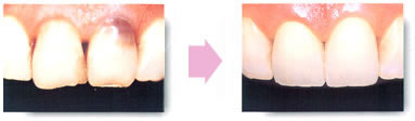 ハイブリットセラミックで前歯2本を治療。すき間も無くなり、とてもキレイになりました。 |