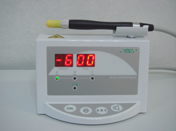 口の中で歯科治療に用いられている金属の粘膜に対する電位差をすばやく測定し、金属の溶出傾向(溶け易さ)を判定する装置です。